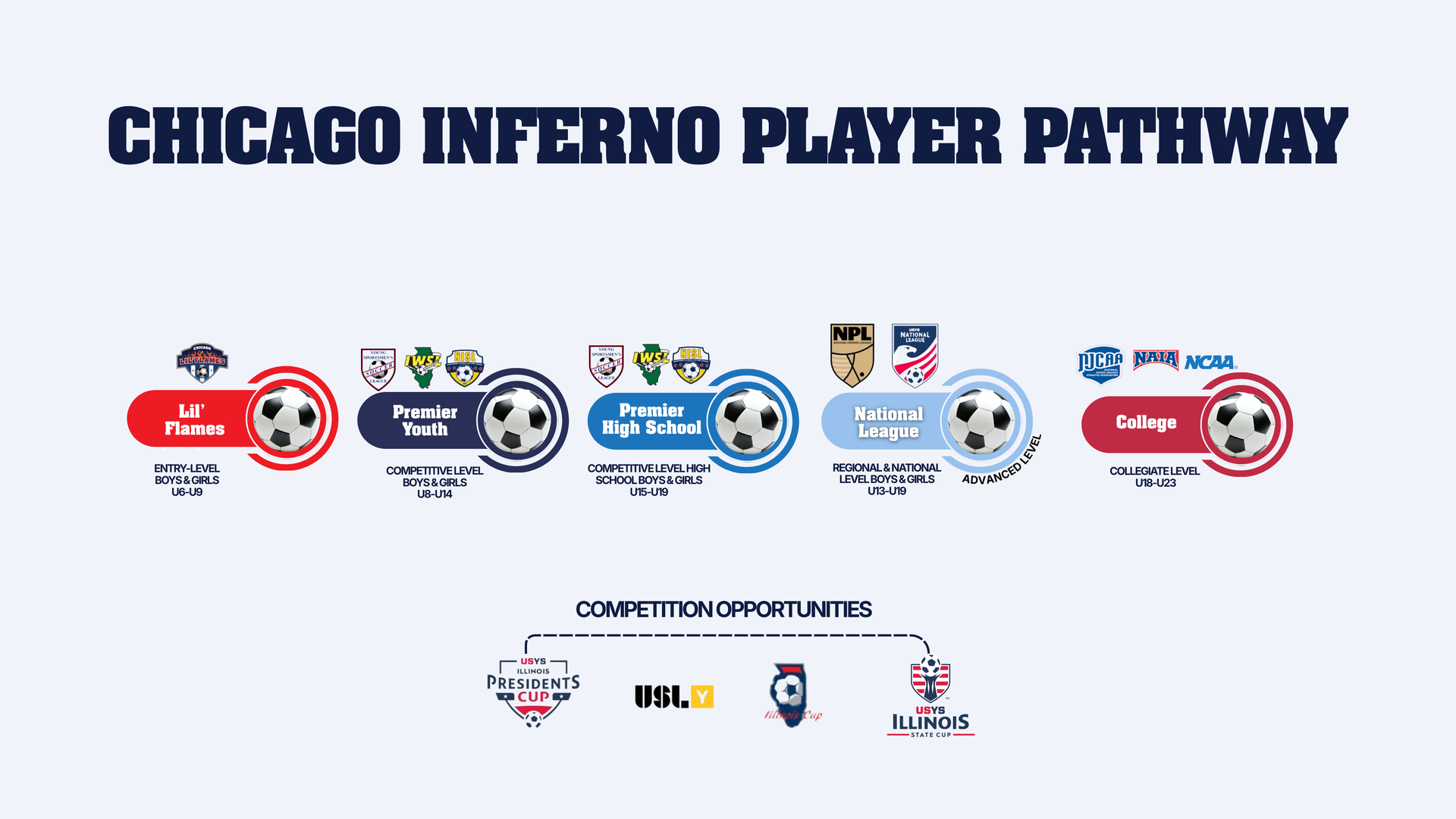 Chicago Inferno is committed to providing a platform for players of all ages and levels to continue to develop both individually and within a team environment.